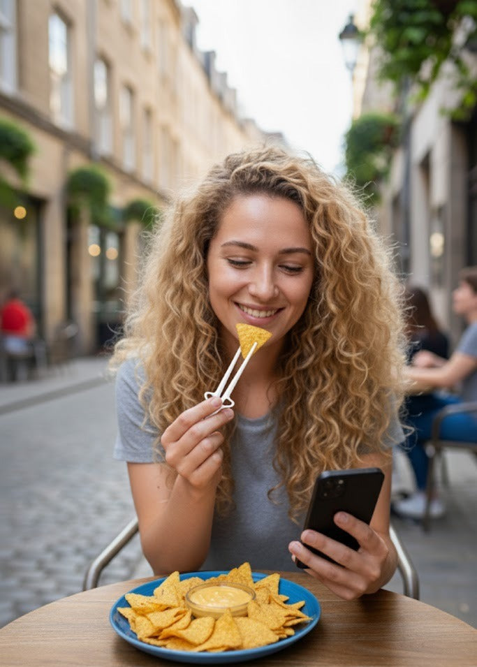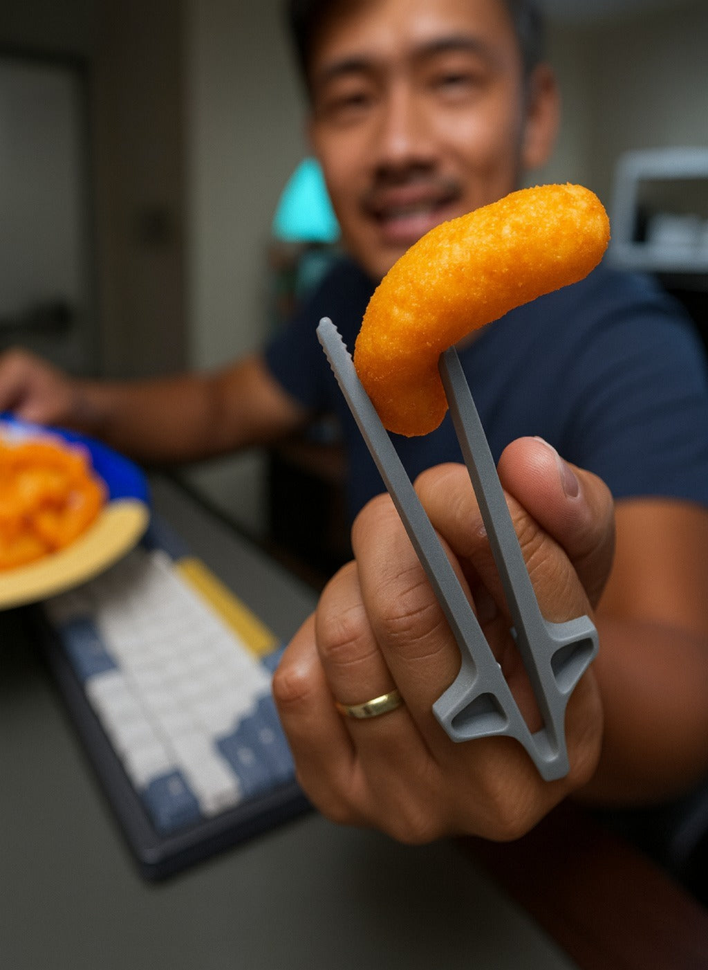 With Snackeez, you get four ways to enjoy your favorite snacks—no greasy buttons, no crumbs in your keyboard. Just choose a color, slip the lightweight tool onto your fingers, and snack away with zero mess.